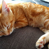 2016 : Trouvé errant à environ 4/5 mois. Sa toute petite queue provient d'une malformation de naissance.
